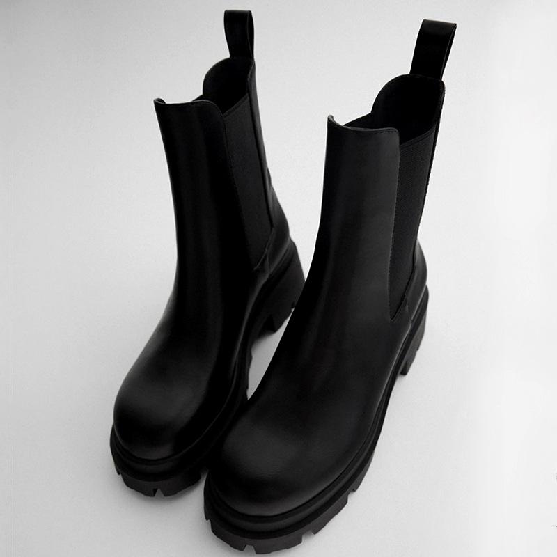 Модные ботильоны на платформе в панк-стиле для женщин 2024 Осень Зима Толстая подошва Мотоциклетные ботинки Женские Черная ПУ кожа Рыцарские ботинки Женские