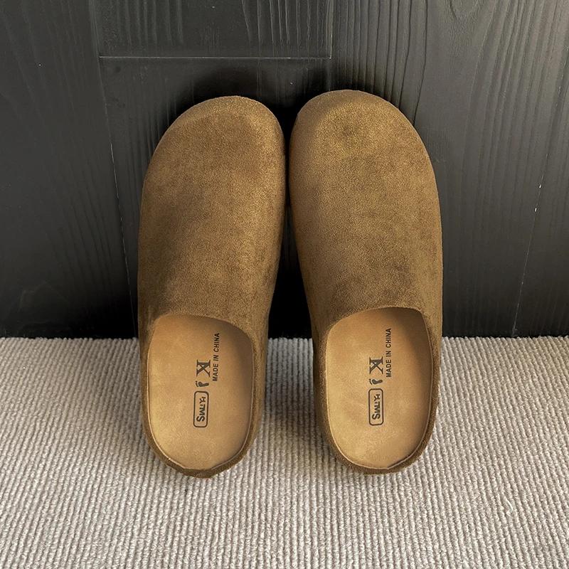 Мода 2025 Замшевые клоги для женщин Мюли Пробковая стелька Женская обувь с поддержкой свода стопы Модные нескользящие уличные пляжные шлепанцы Домашняя обувь