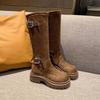 Мода 2025 Женские Стильные Сапоги-Слоучи до Середины Икры Мягкие Удобные с Дизайном Круглого Носка Застежка-Пряжка Дизайн Повседневная Обувь для Улицы