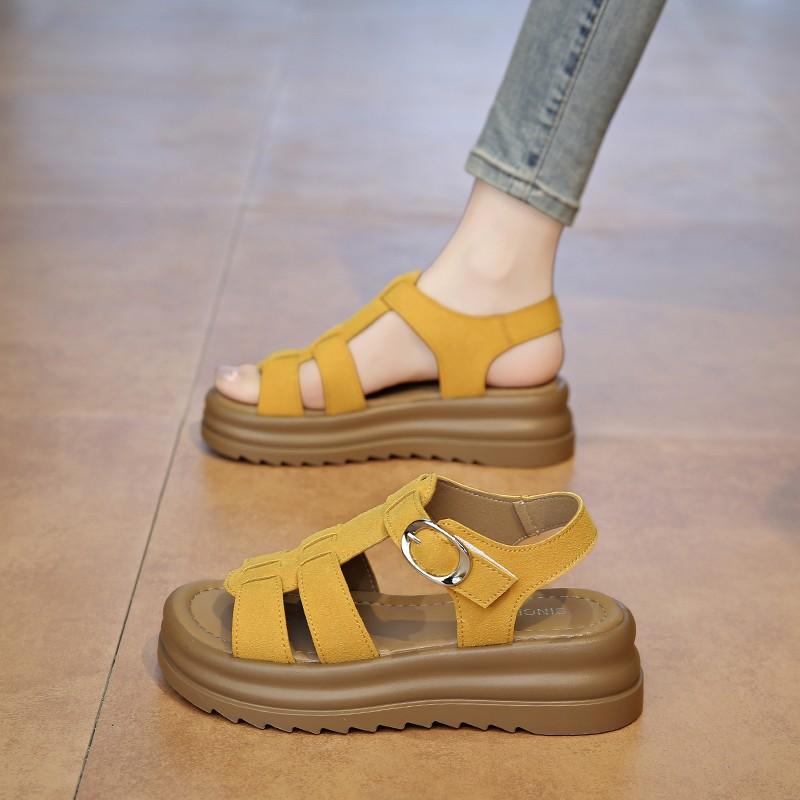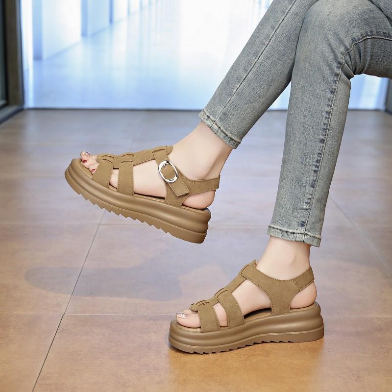 Мода 2025 Женские Новые Популярные Туфли с Дизайном Пряжки Тренд Повседневные Сандалии на Платформе Нескользящие Уличные Сандалии Уникальные Модные Сандалии