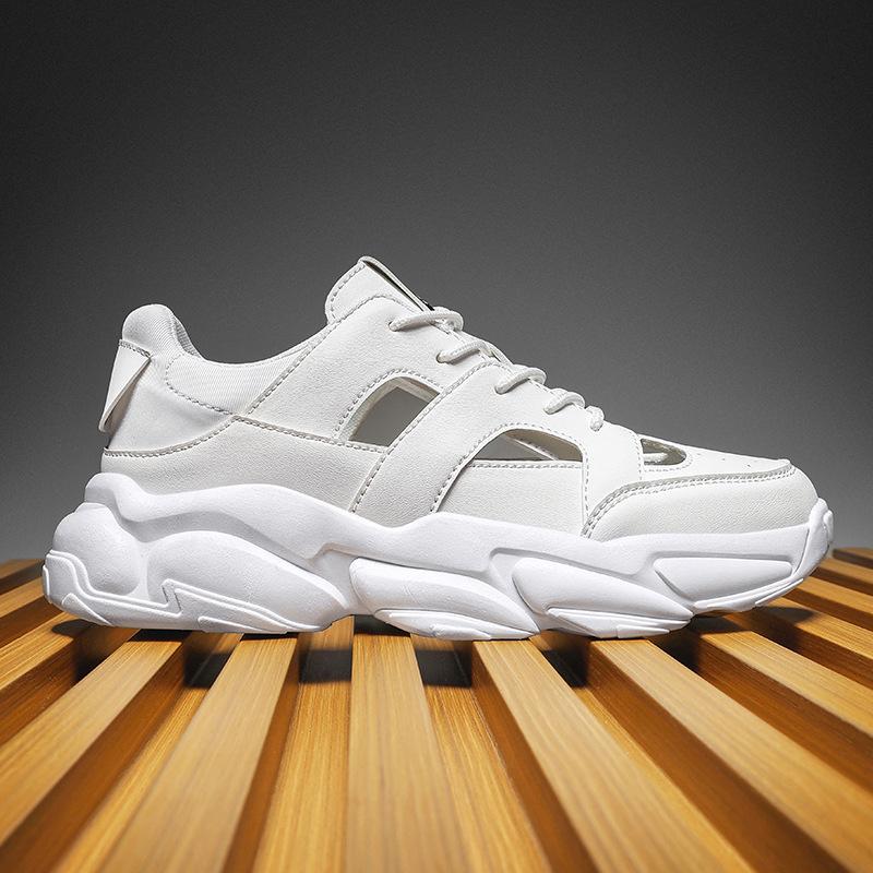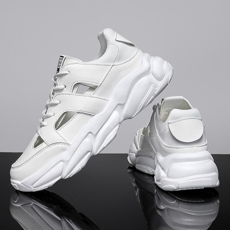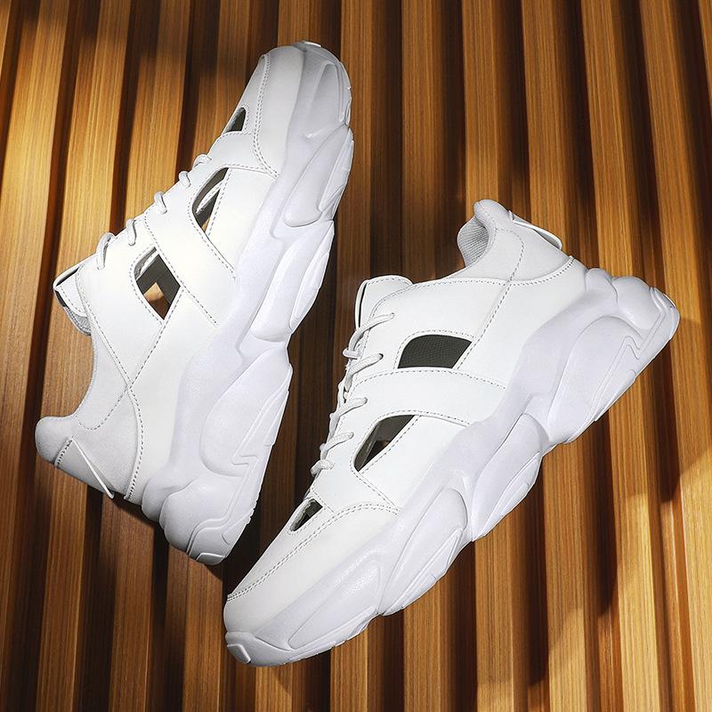 Модные летние дизайнерские новые кожаные мужские кроссовки на полой платформе, модные повседневные мужские спортивные туфли с мягкой подошвой, мужские сандалии