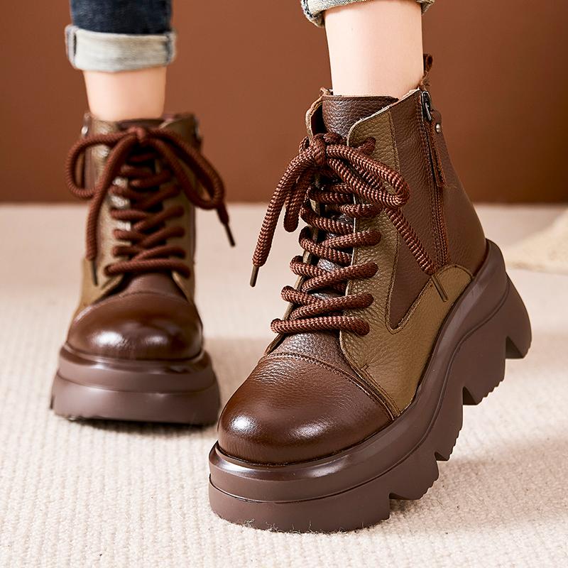 Модные ботильоны GKTINOO из натуральной кожи с круглым носком, на толстой подошве, на плоской платформе, женская обувь, осень-зима, ретро, ручная работа, короткие ботинки
