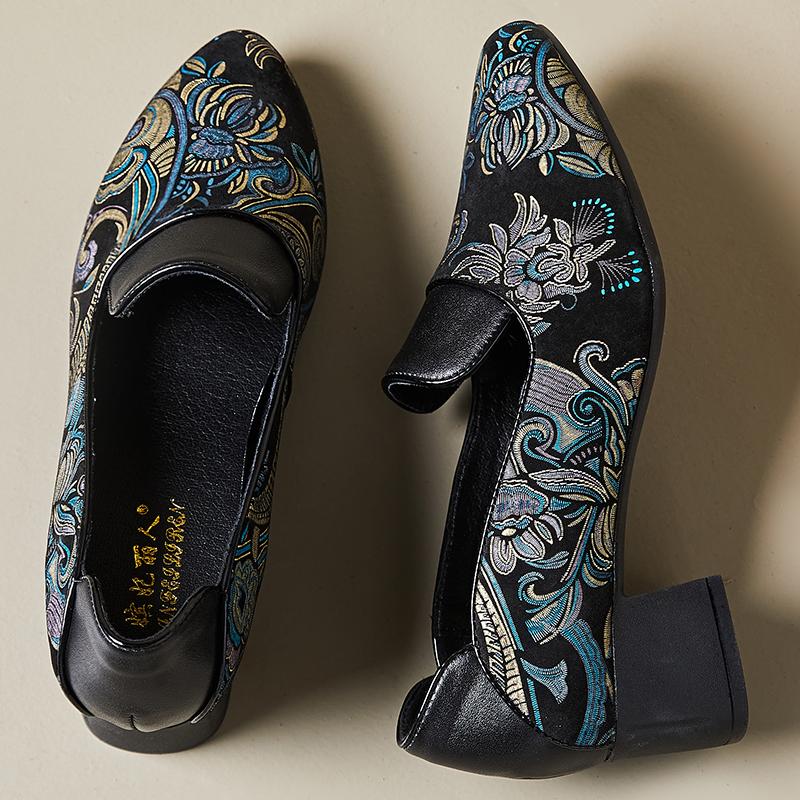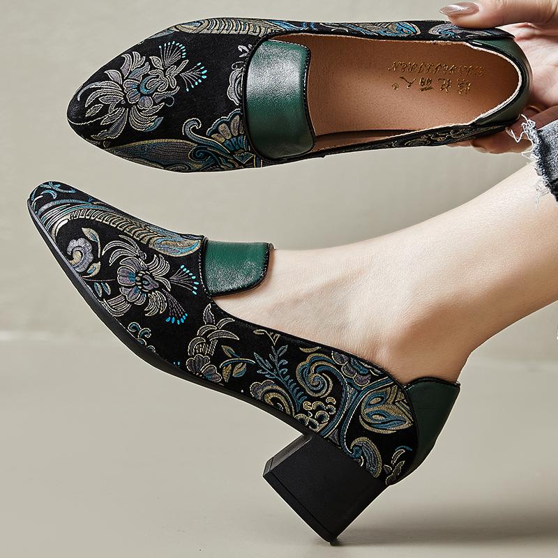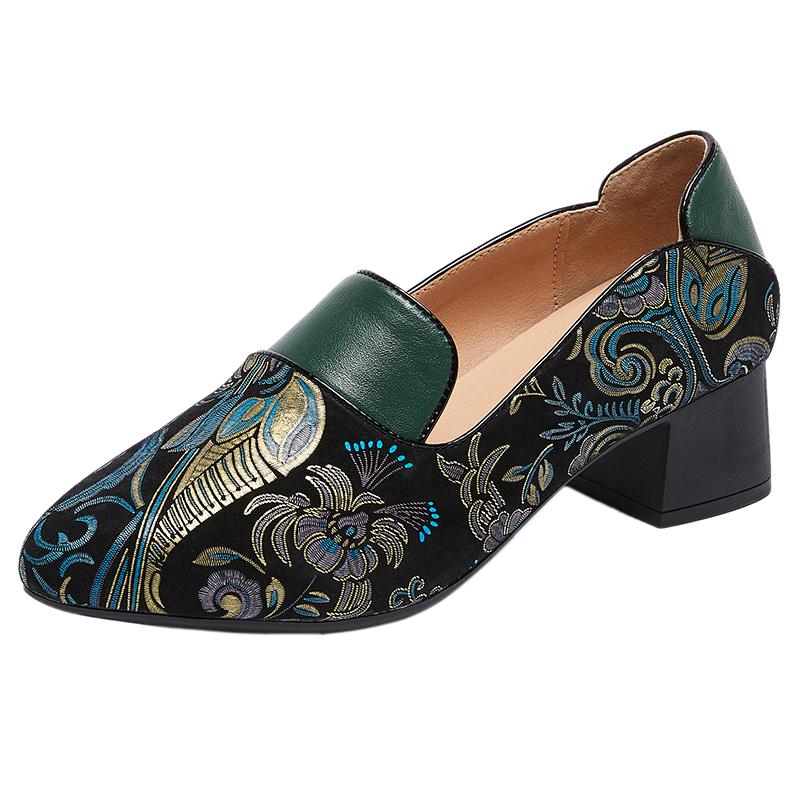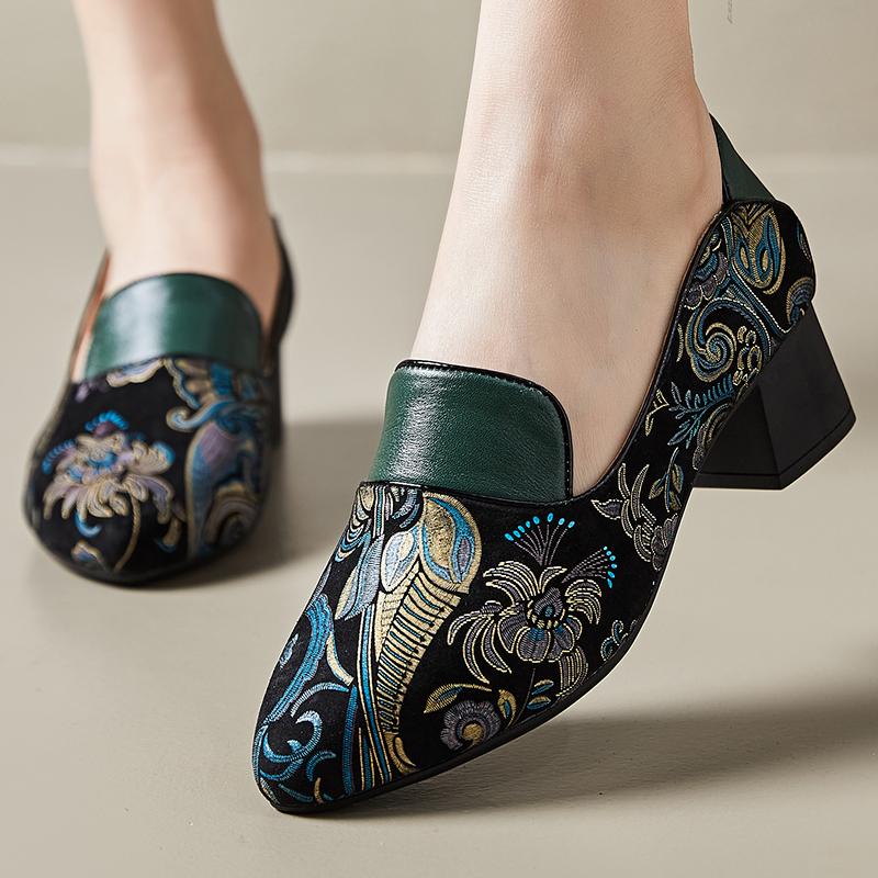 Мода GKTINOO 2025 Весна Новые Туфли-лодочки в этническом стиле с острым носком на высоком каблуке, Универсальные, Ретро, из натуральной кожи, Женская обувь