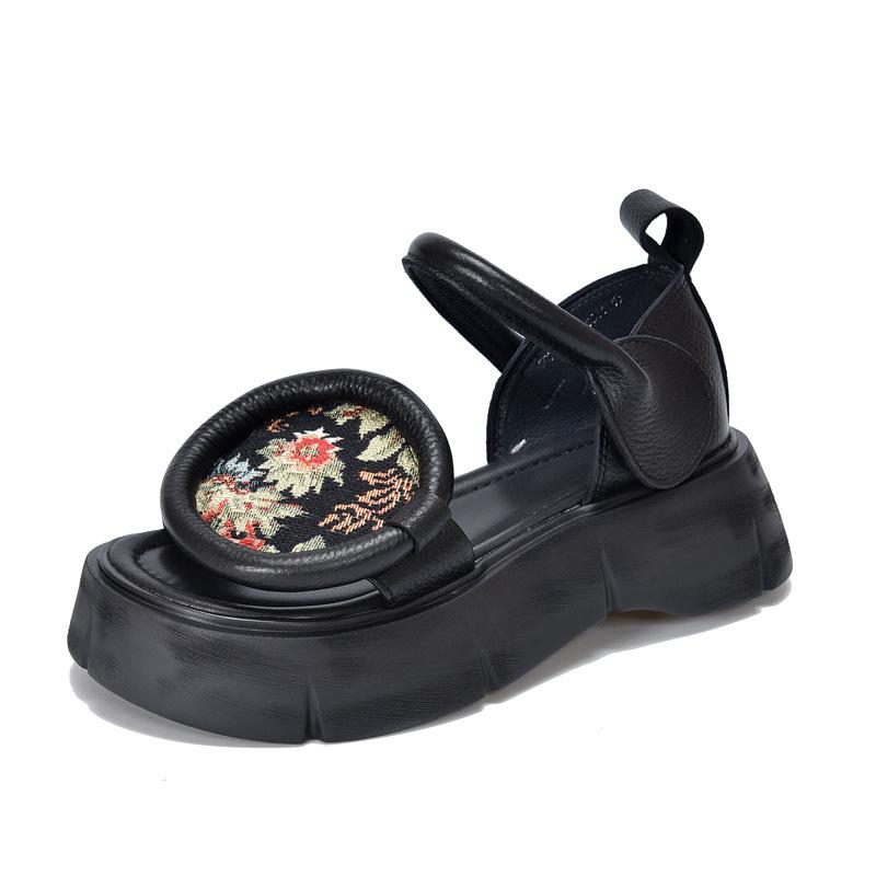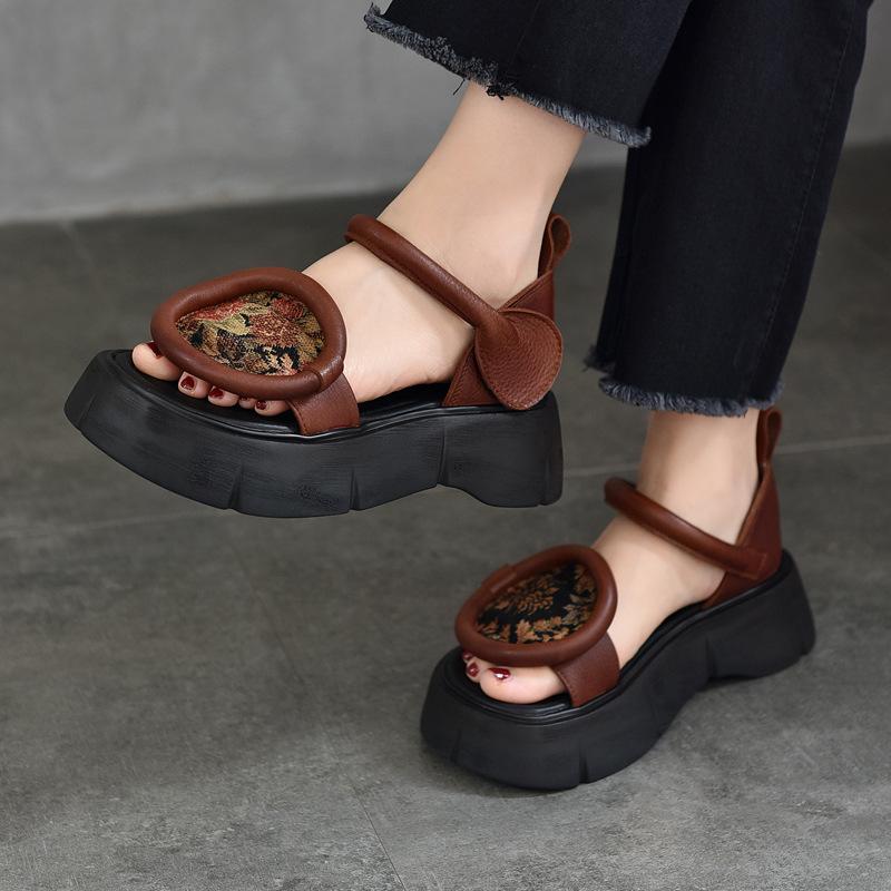 Модные GKTINOO 2025 Летние Новые Универсальные Сандалии с Открытым Носком из Натуральной Кожи Ретро Удобные на Толстой Подошве на Липучке Женская Обувь