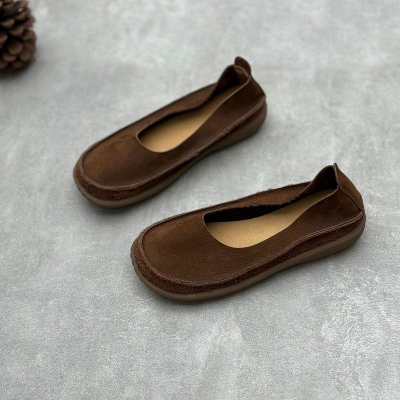 Модные GKTINOO Ручной работы Туфли на плоской подошве из натуральной кожи 2025 Новые лоферы Круглый носок Мягкая подошва Простые женские слипоны