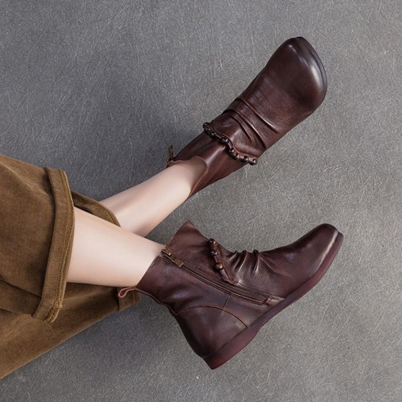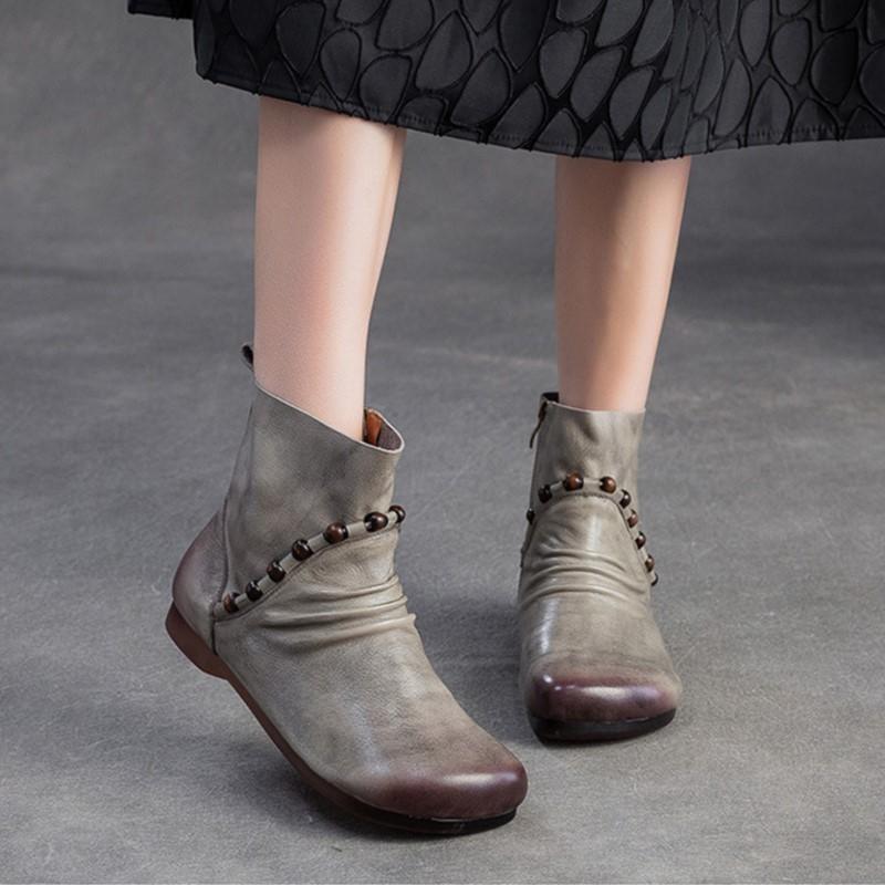 Мода GKTINOO 2025 Осень/Зима Новые Ботильоны Ретро из Натуральной Кожи Боковая Молния Удобные Легкие Универсальные Женские Туфли
