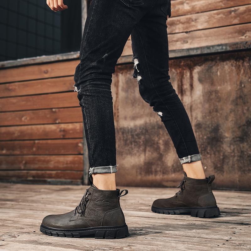 Модная теплая осенне-зимняя мужская обувь Классический минималистичный стиль Повседневная Деловая Офисная Уличная черные взрослые короткие ботинки