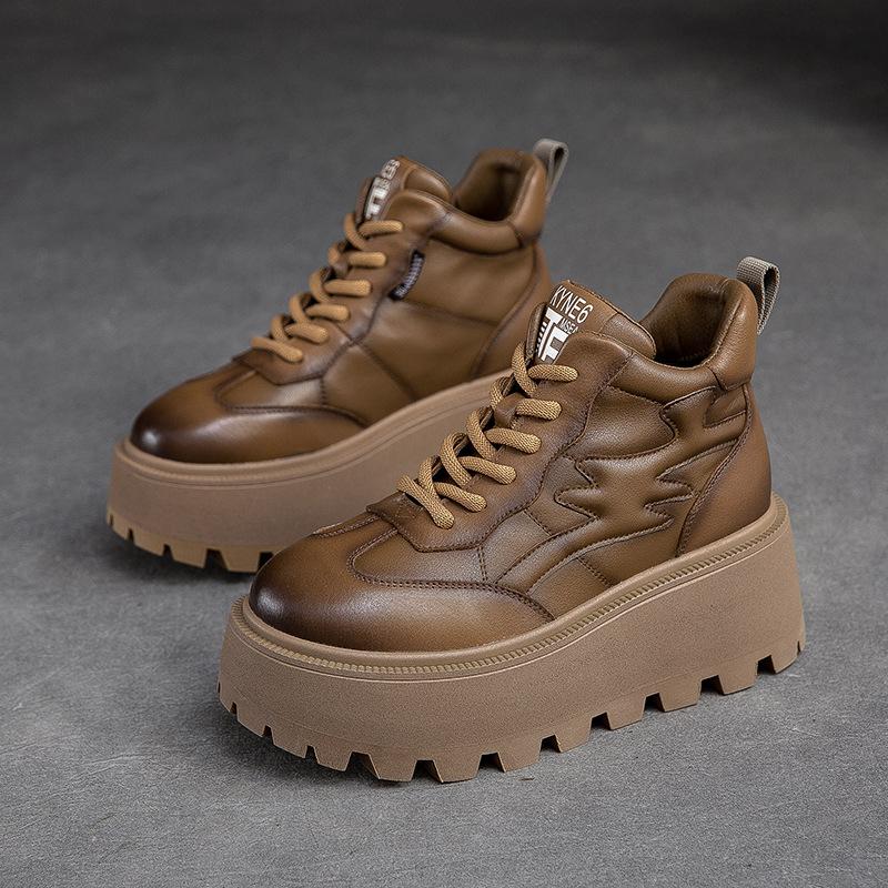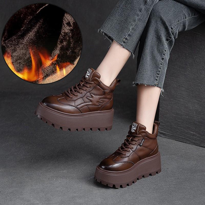 Модные лоферы GKTINOO для женщин 7 см, ретро, из натуральной кожи, ботильоны до щиколотки, британские, осенне-зимние, плюшевые мокасины, обувь на плоской резиновой подошве