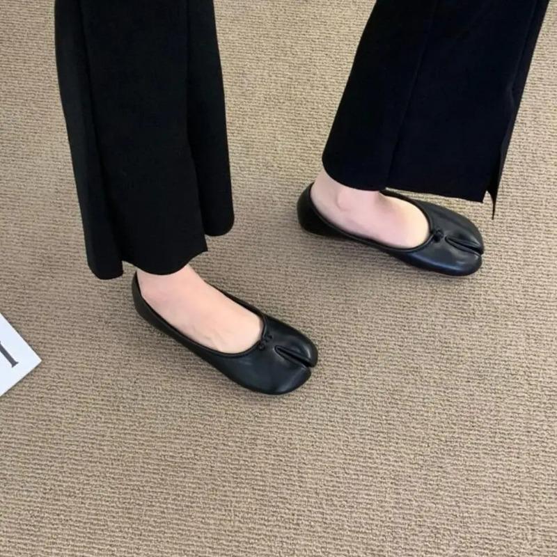 Модная обувь таби в японском стиле, женские удобные кожаные балетки с раздвоенным носком, лоферы, женские туфли Мэри Джейн, мокасины, женские балетки