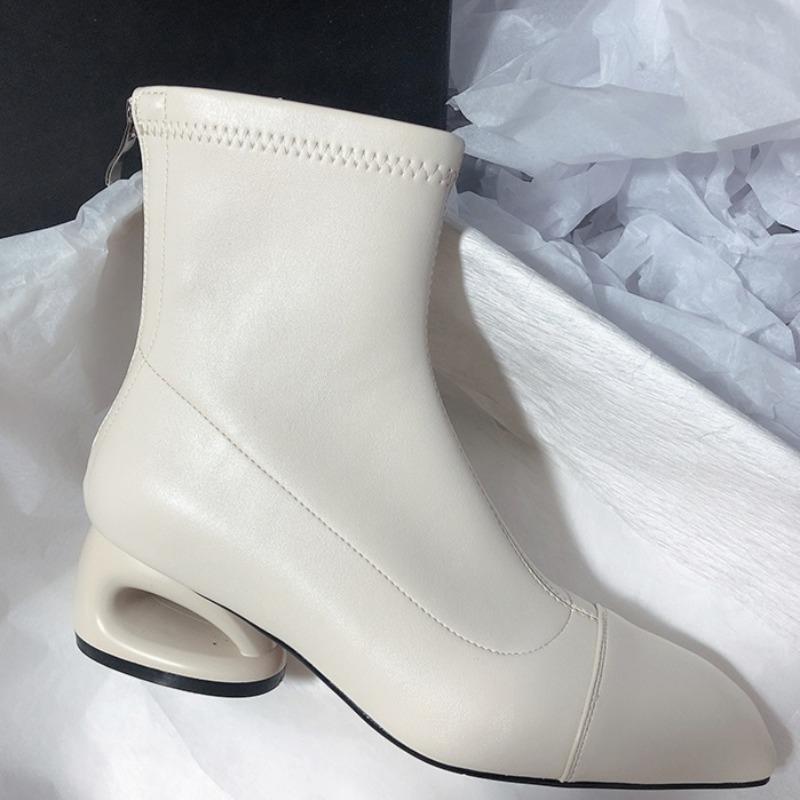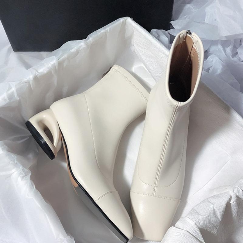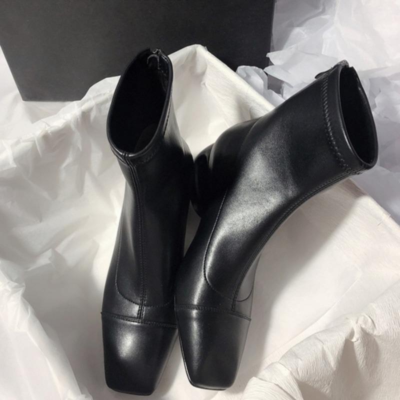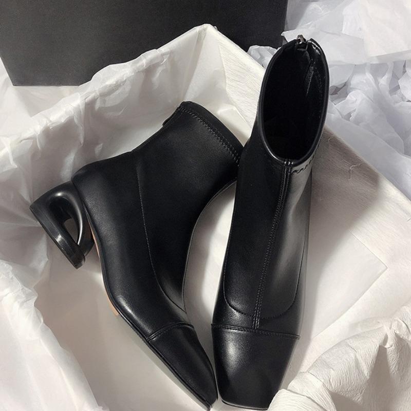 Мода 2025 Новые женские ботильоны с полым каблуком и квадратным носком, металлические, современные, для женщин, зимний уличный стиль, ботинки на среднем каблуке, женские
