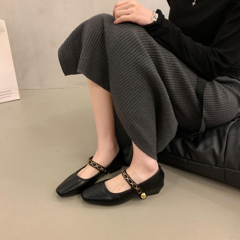 Мода 2024 года, повседневные туфли на плоской подошве Mary Jane, женские туфли в скандинавском стиле с золотой цепочкой, туфли в стиле Лолиты из искусственной кожи