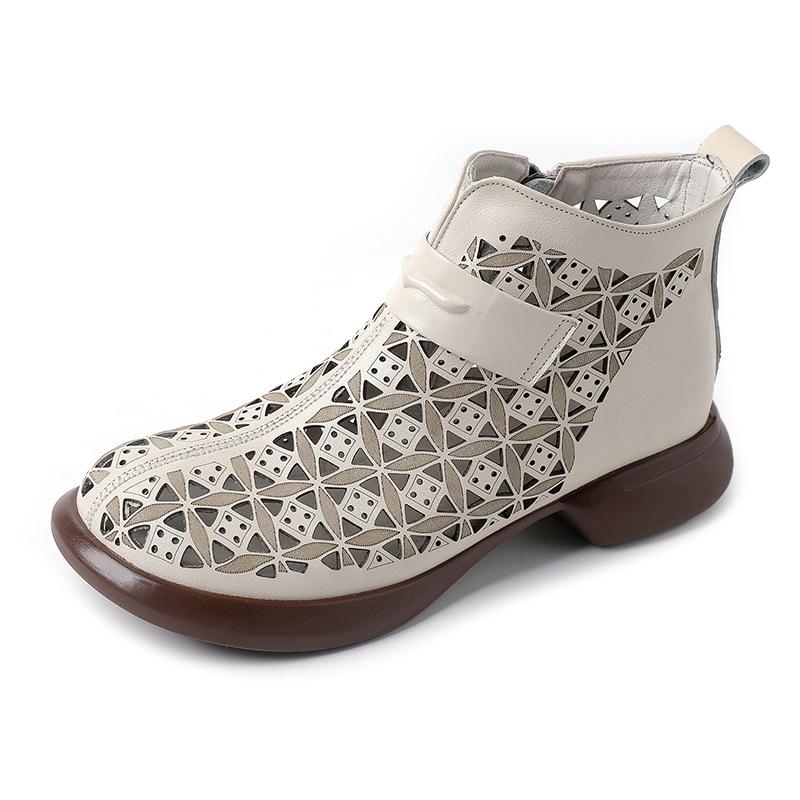 Модные летние ботильоны GKTINOO 2025, обувь из натуральной кожи, женские сандалии на низком каблуке, ботинки на боковой молнии с вырезами, дышащие, Mujer Zapatos — купить товар онлайн с бесплатной доставкой по всему миру!