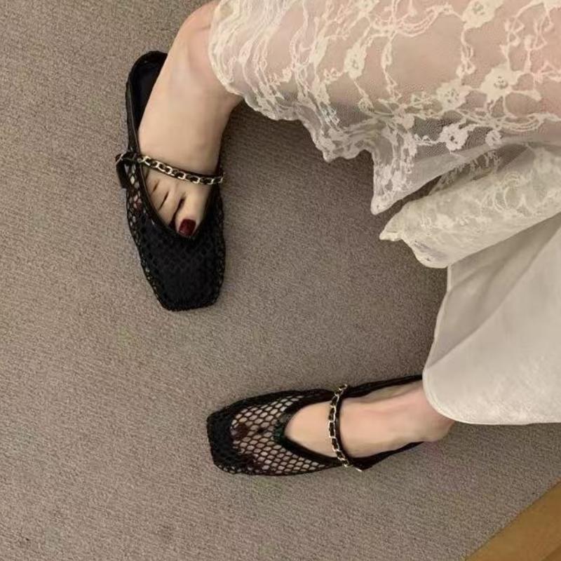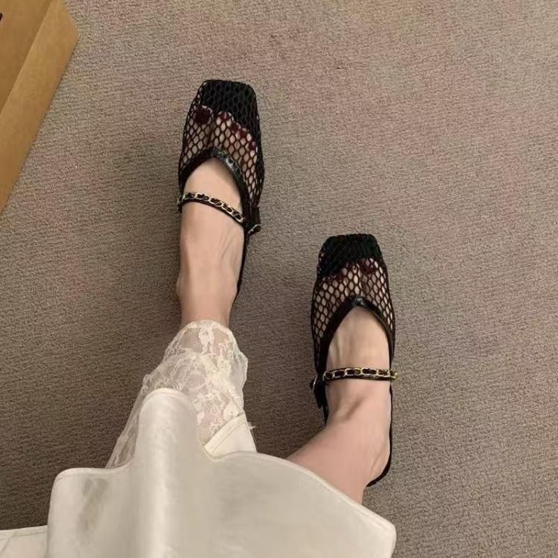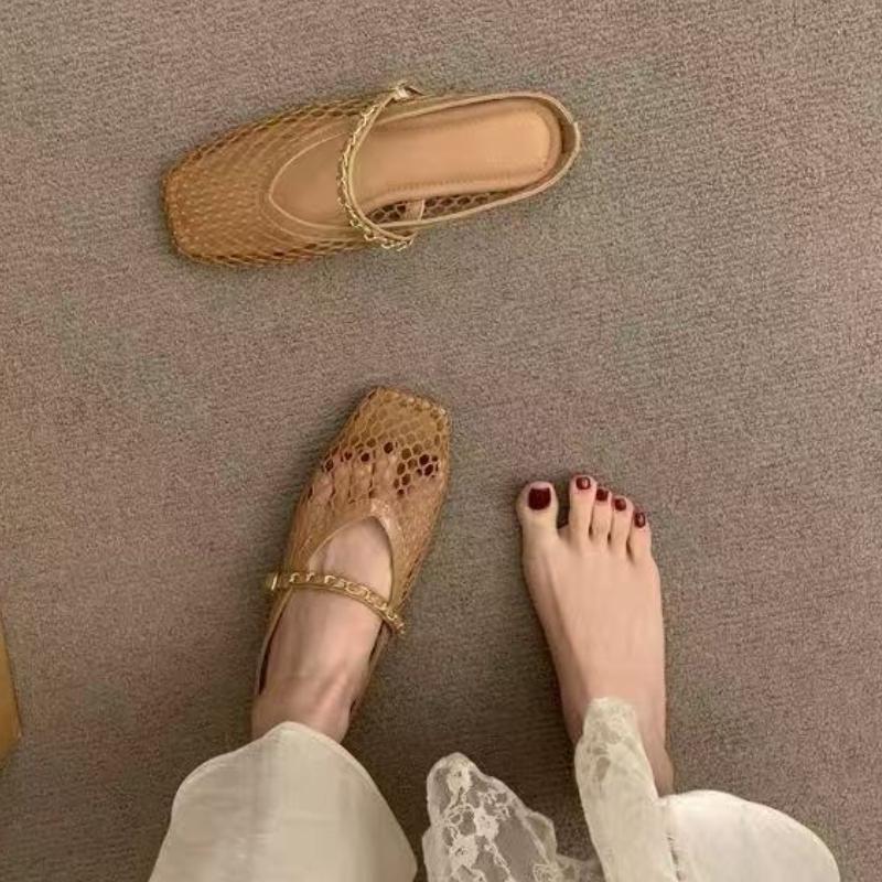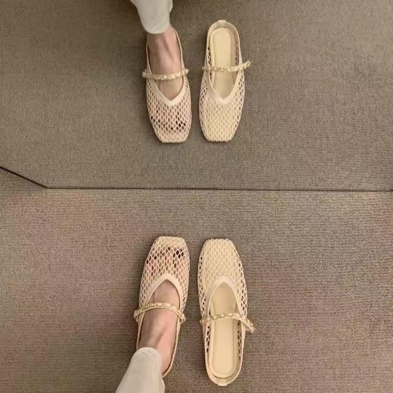 Модные Новые Ретро Балетки Летние Новые Квадратный Носок Рыбацкая Сетка Дышащие Полые Уличная Обувь Слипоны Баотоу Полушлепанцы