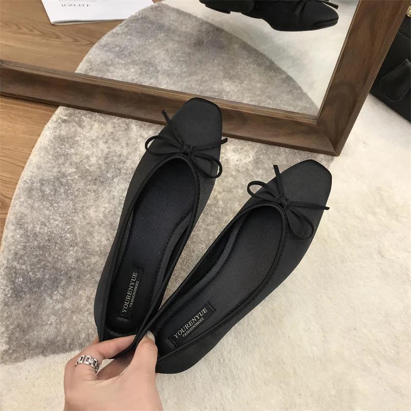 Модные Роскошные Кружевные Балетки из Шелка с Завязками на Ногах Женские Балетки с Квадратным Носком и Бантом Свадебные Туфли Мэри Джейн Женская Обувь