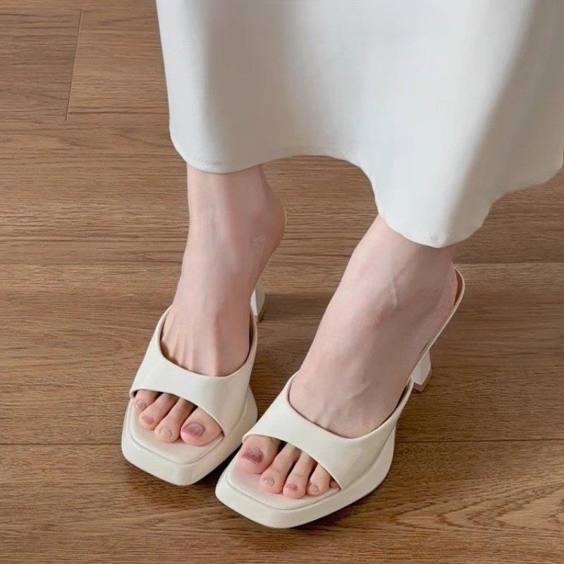 Мода 2025 Новые женские тапочки шлепанцы летний дизайн модные с открытым носком квадратный каблук 13 см гладиаторские сандалии обувь