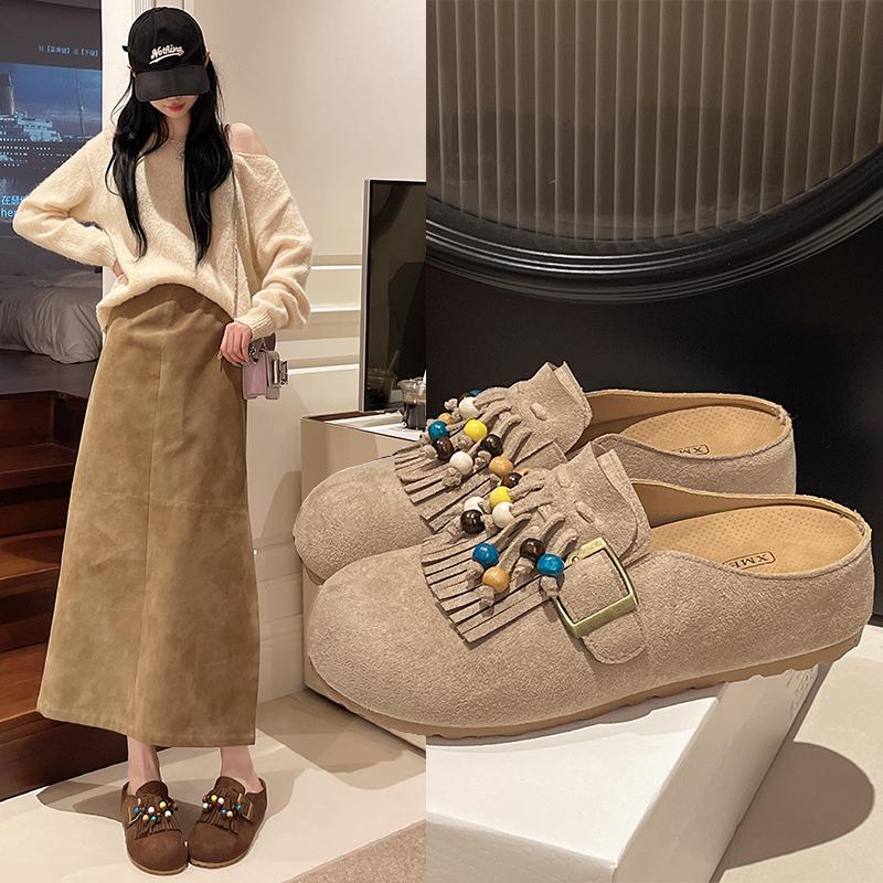 Мода 2025 Женские мюли Туфли Балетки Замшевые Женские сандалии Бахрома Летняя мода Шлепанцы Для ходьбы Платье Уютные