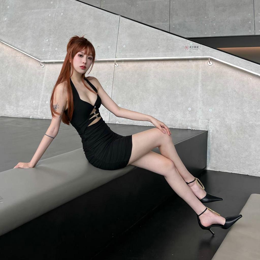 Мода 2025 Лето Новинка Дизайн с острым носком Высококлассные высокие каблуки Тонкие каблуки J Стразы Круглая пряжка Нишевые босоножки на одно плечо для женщин
