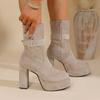 Fashion Chunky Platform Super High Heel Ankle Boots Women 2025 Winter Metal Buckle Suede Black Boots Sexy Party Nightclub Shoes Autumn