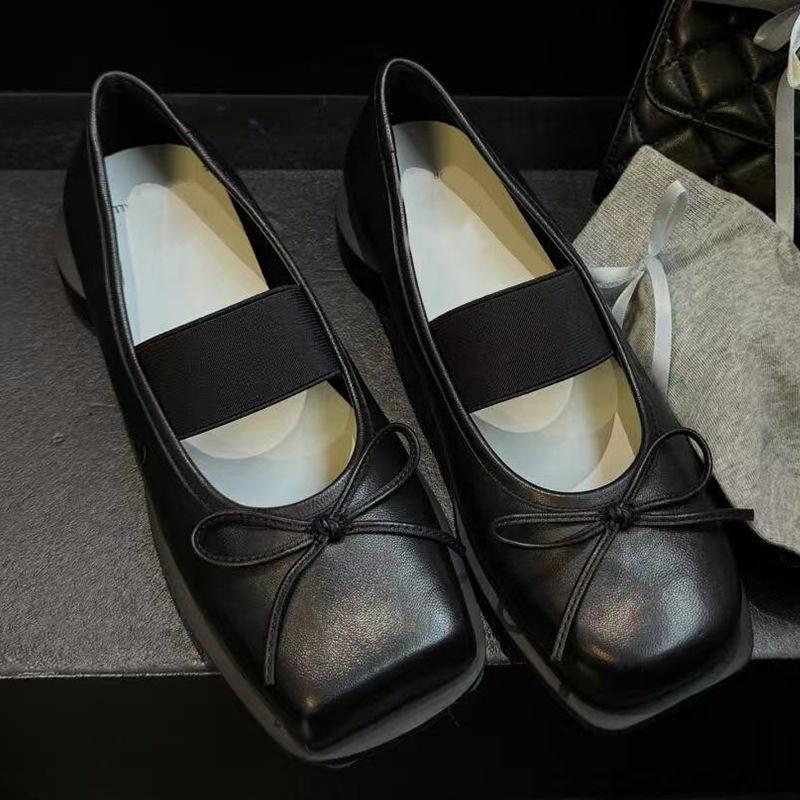 Модные ретро балетки с мелким квадратным носком для женщин, с бантом, ремешком на одно слово, круглым толстым каблуком, Мэри Джейн 2025, слипоны, черные повседневные туфли