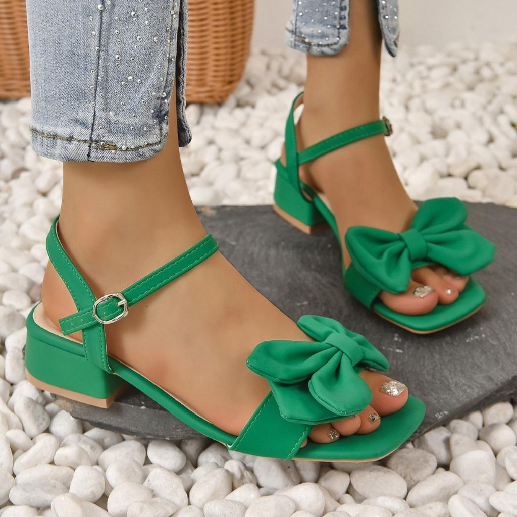 Модные большие однотонные босоножки с открытым носком, женские летние новые однотонные пряжки, модные темпераментные удобные женские туфли с бантом