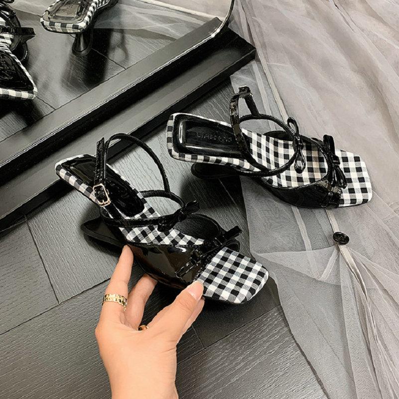Модные туфли на наклонном каблуке, Нишевый дизайн, Босоножки с открытым носком, Сказочные туфли, Новый стиль 2025, Квадратный носок, Тонкий ремешок, Римские туфли с бантом