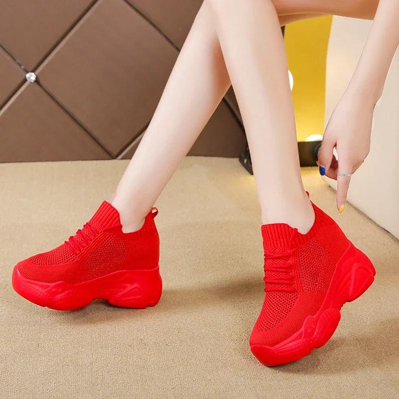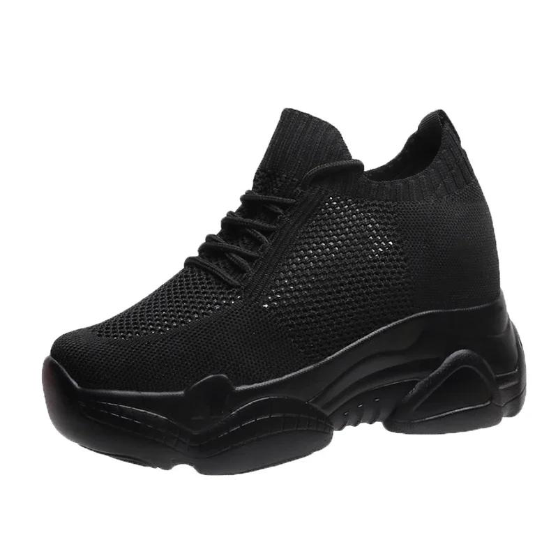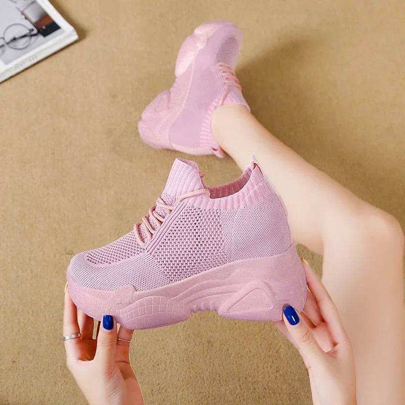 Модные дышащие кроссовки на массивной подошве из воздушной сетки Rimocy Женские 2025 Весна Лето Вязаная обувь с увеличением роста Женская белая повседневная обувь