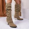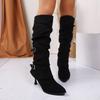 Мода 2025 Уличный стиль Остроносые Сапоги до колена Женские Высокие каблуки Женские Ретро Пряжка на ремне Плиссированные Модные Горячий товар Длинные сапоги