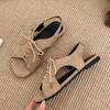 Модные босоножки с открытым носком и ремешками, женские, летние, новая мода, универсальные, винтажные, с квадратным носком, на шнуровке, на мягкой подошве, плоские, для улицы