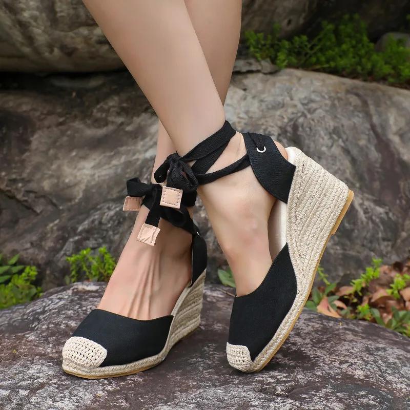 Модные пляжные соломенные танкетки 2024 лето новинка французские платформы на шнуровке на высоком каблуке большого размера плетеные туфли-рыбаки сандалии сандалии