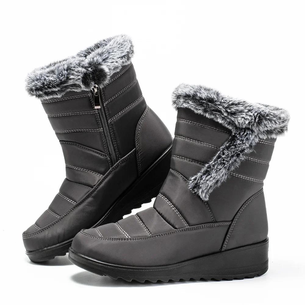 Модные толстые плюшевые водонепроницаемые зимние ботинки для женщин, нескользящие ботинки до середины икры из искусственного меха, женские уличные ботинки на толстой подошве с хлопковой подкладкой