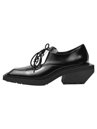 Модная ретро обувь в британском стиле на толстой подошве из натуральной кожи женская черная с квадратным носком универсальная нишевого дизайна на шнуровке с металлическим декором — купить товар онлайн с бесплатной доставкой по всему миру!