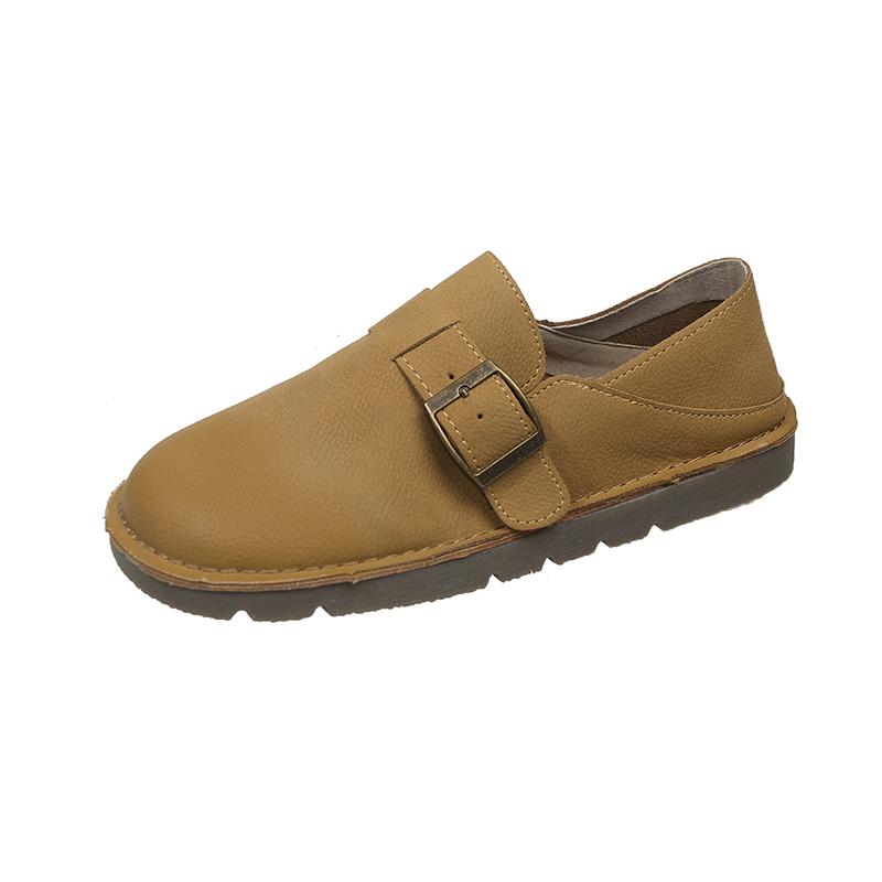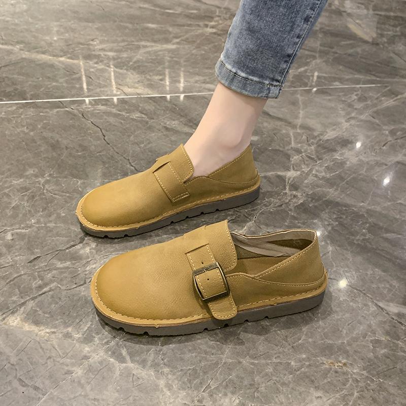 Мода Новый Стиль Роскошная Кожа Женская Обувь Весна Ретро Круглый Носок Повседневная Плоская Резиновая Подошва Пряжка Ремень Женские Туфли