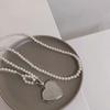 Fashion Long Necklace with Big Mirror Heart Pendant Women Pearl Shoudler Chain Personality Jewelry Wedding Party Accessories KTJ