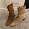 Мода Мода Заостренный Носок Флок Женские Ботильоны Обувь На Низком Каблуке Дизайнерская Обувь Слипоны Женские Современные Короткие Ботильоны Обувь