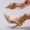 Модный бренд Показ Золотая кисточка Подвесные серьги Сандалии на щиколотке Модные черные туфли-лодочки Элегантная свадебная обувь для банкета Женская обувь 43