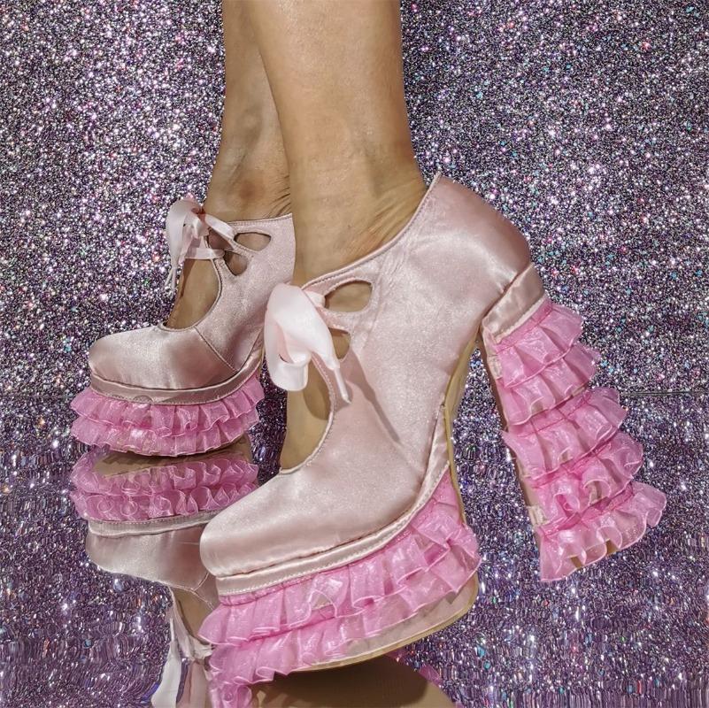 Мода Размер 36-47 Заклепки/Кружевной край Платформа Высокие каблуки Ночной клуб Сексуальная Острая Девушка Сценическая обувь Европейские Американские Женские Одинарные Туфли