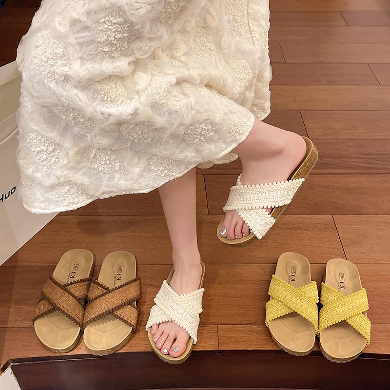 Модные летние женские шлепанцы на платформе с открытым носком, уличные, с перекрестными ремешками, плоская подошва, слайды, женская повседневная пляжная обувь для отпуска