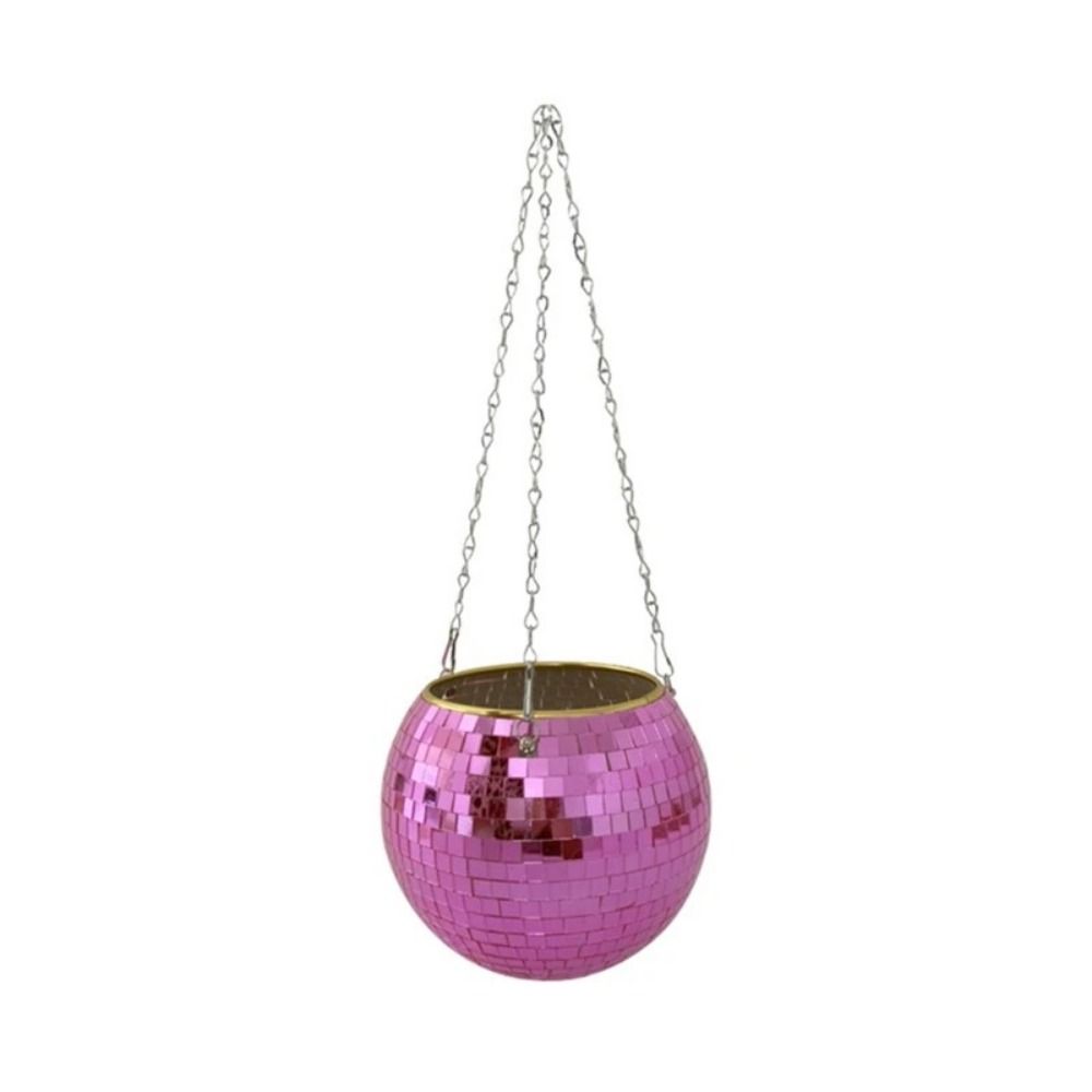 [Изысканный современный дизайн] Наше кашпо имеет сферический дизайн в стиле диско с привлекательной эстетикой, серебряной цепочкой и деревянной подставкой, что делает его идеальным винтажным и богемным кашпо, которое оживит ваше пространство.. Каждое стеклянное зеркало в этом прочном пластиковом кашпо в форме диско-шара изготовлено вручную, что придает каждому подвесному растению нотку изысканного стиля.