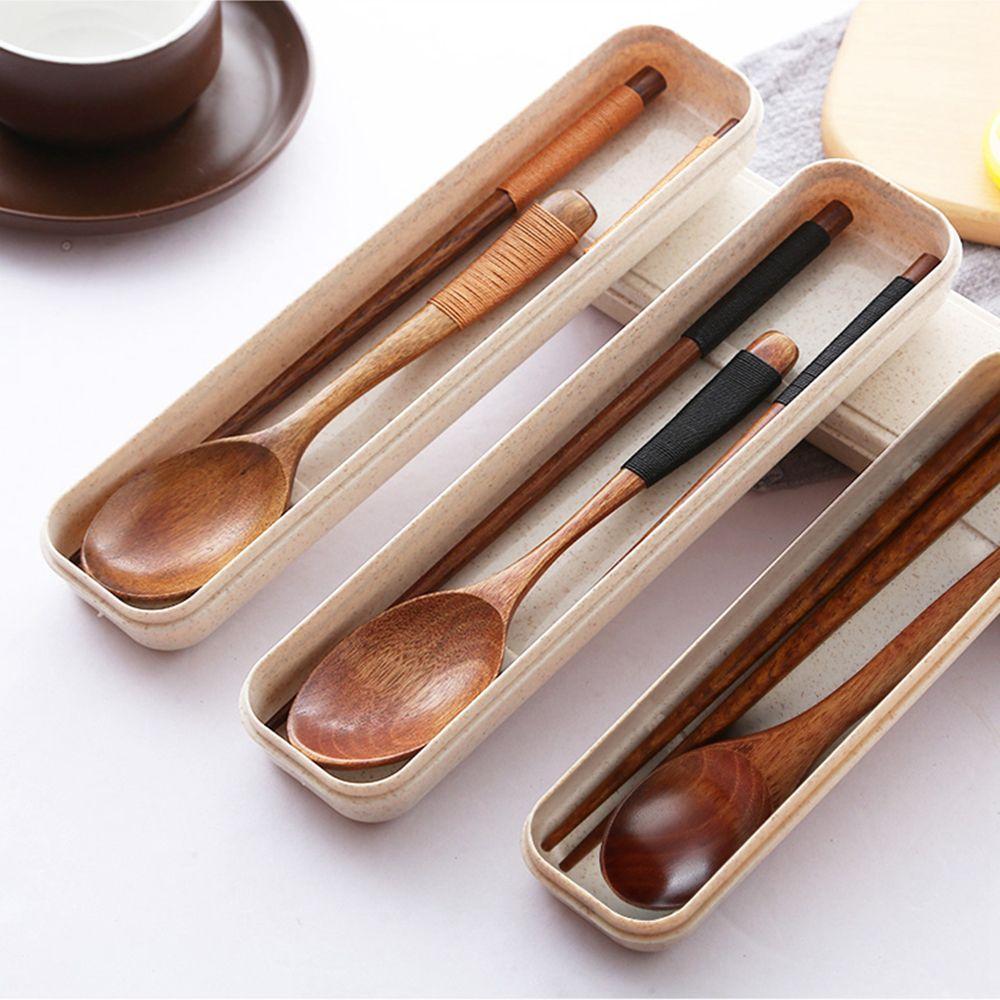 Экологичный С Коробкой Деревянный Портативный Многоразовый Дорожный Набор Ложка Посуда Палочки для еды Столовые приборы — купить товар онлайн с бесплатной доставкой по всему миру!