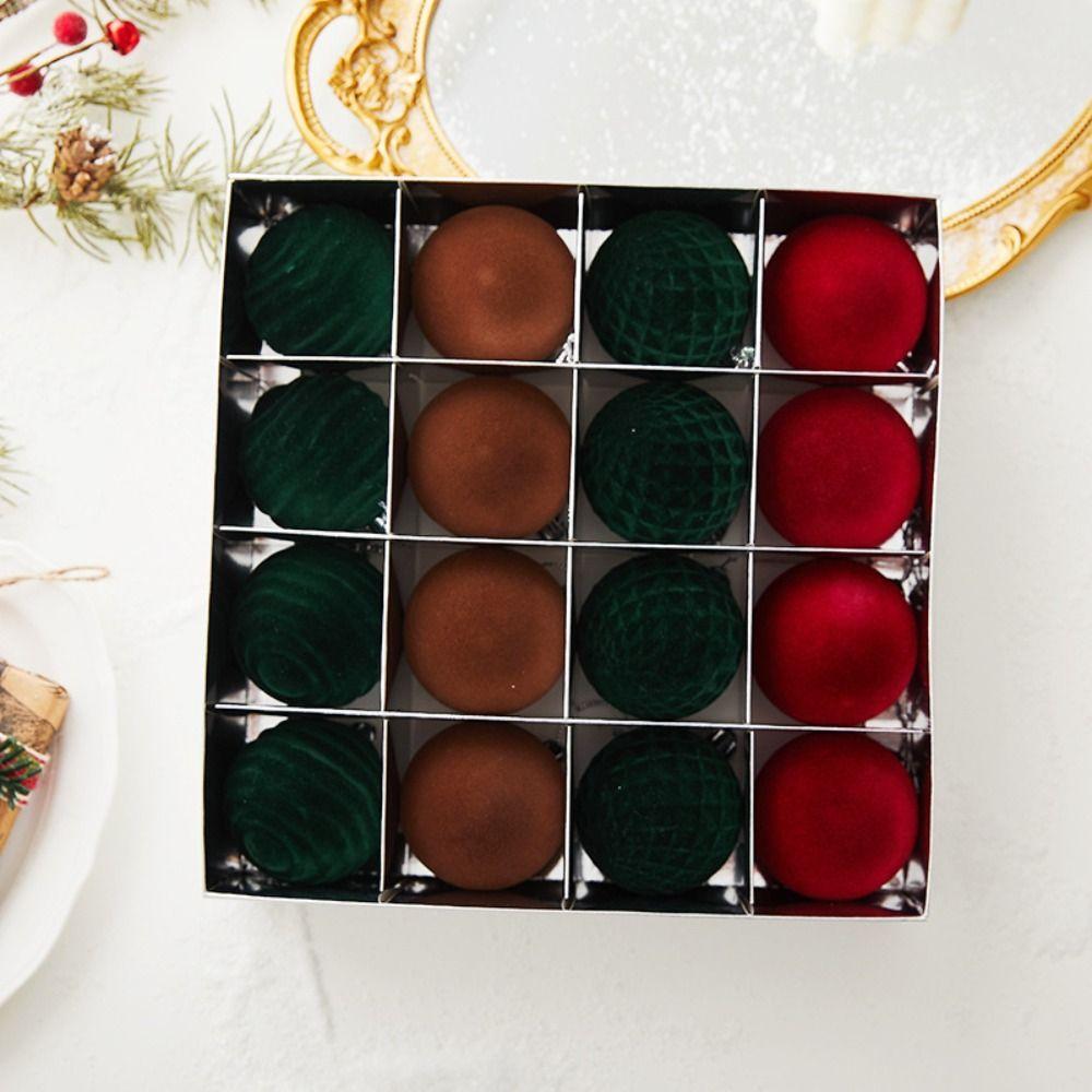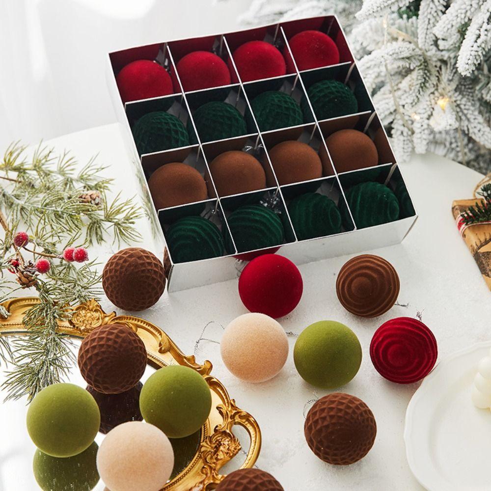 16pcs Shatterproof Christmas Tree Ball Pendant Flocking Xmas Tree Ornaments Party Favors