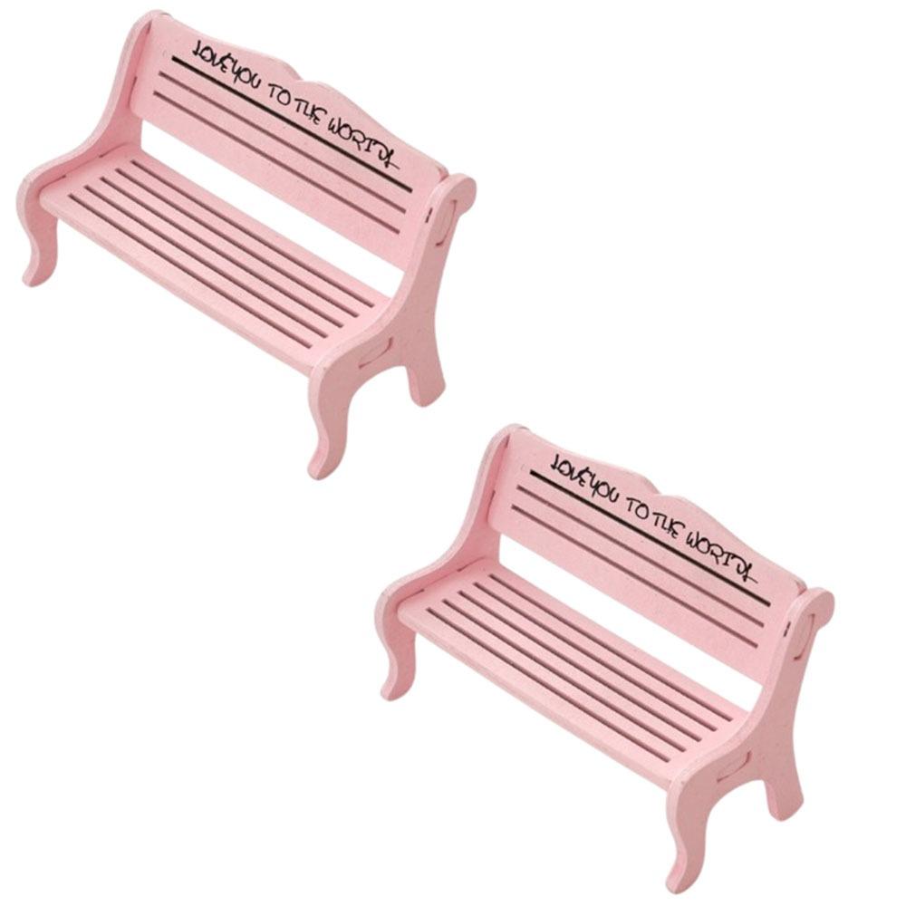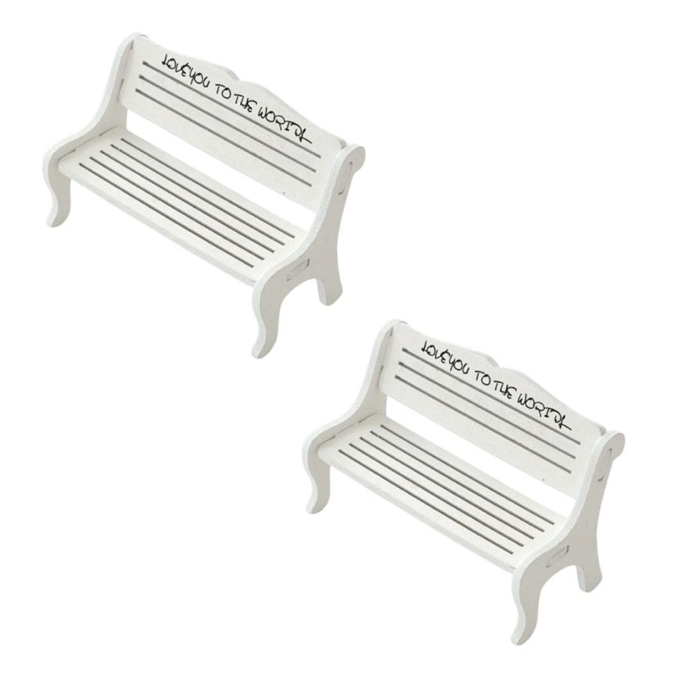 2Pcs Background Props Doll Chairs Wooden Mini Stool Garden Ornaments Small Bench DIY House