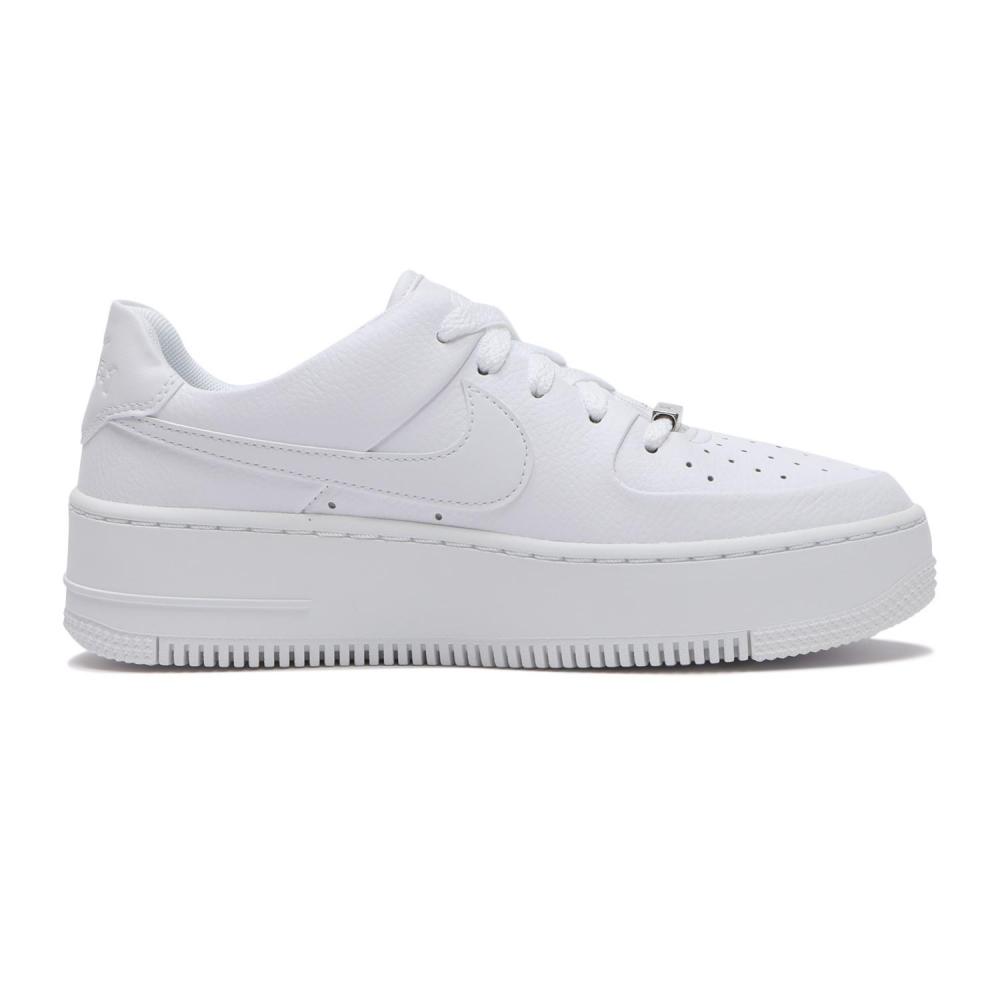 NIKE W AF1 SAGE LOW WAR5339 100WHITE/WHITE is a low-top sneaker model reinterpreted for women based on the classic basketball shoe, the Air Force 1. This product is crafted with high-quality leather material for the upper, emphasizing a classic vibe. The wedge-shaped thick platform midsole adds boldness, and the minimalist upper design enhances lightness and functionality. The sculpted collar provides comfort. The overall all-white finish ensures high design quality suitable for year-round wear.