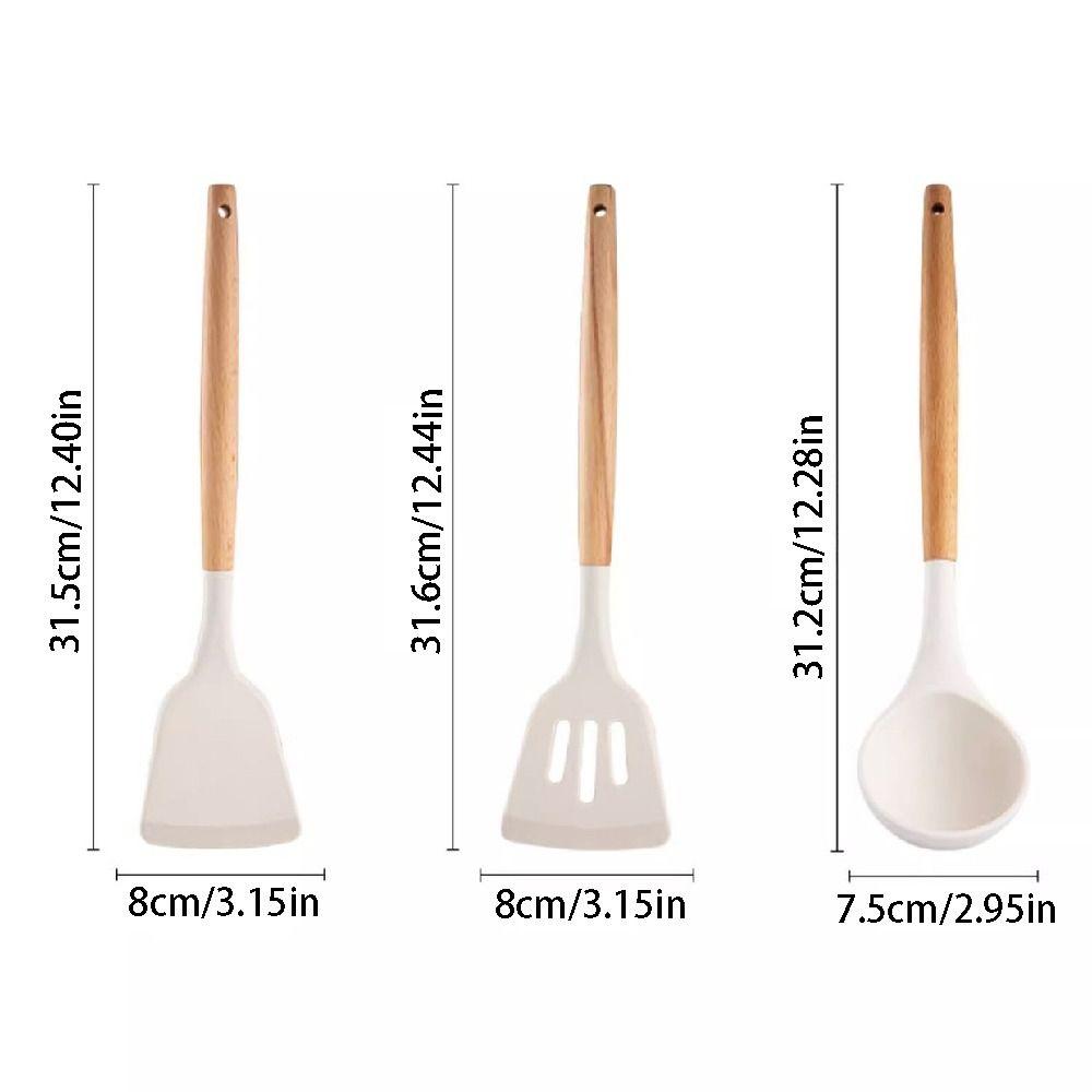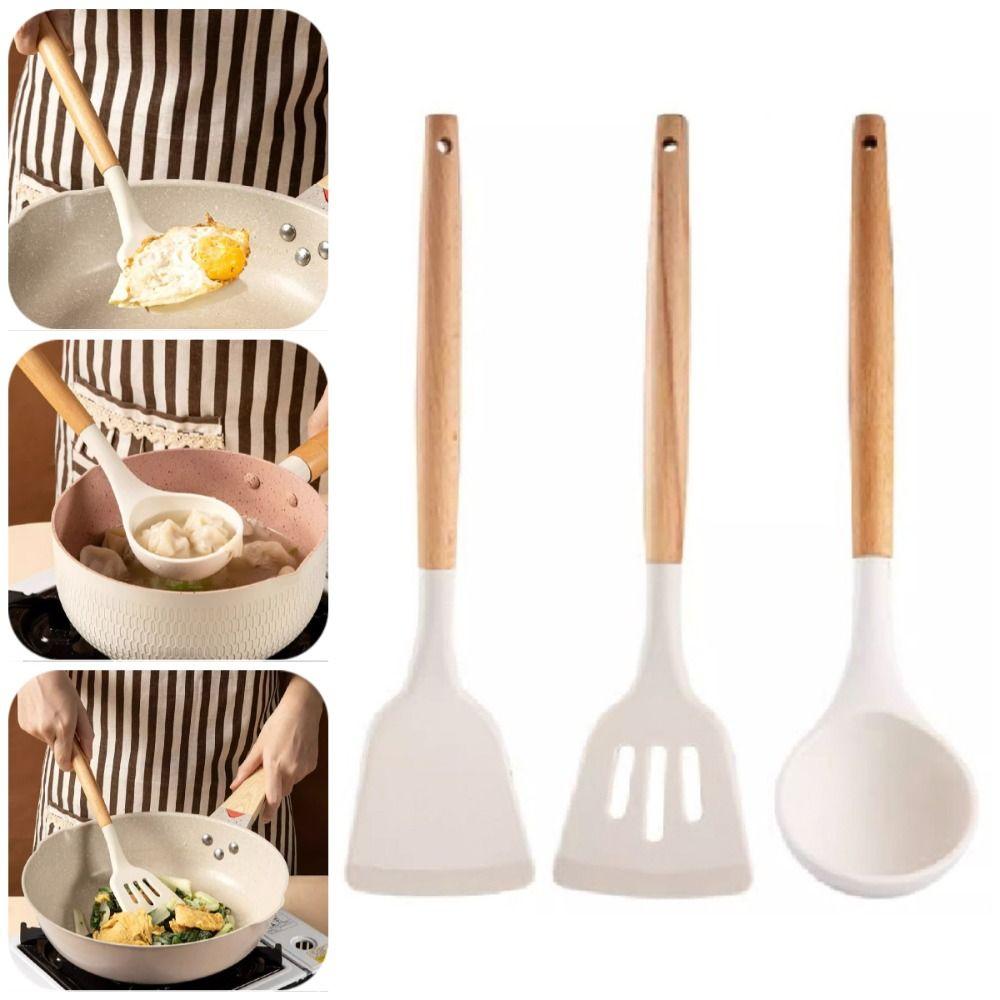 3Pcs Wooden Handle Non-Stick Spatula Non-slip Pot Spatula Set Cooking Turner Spatula Household