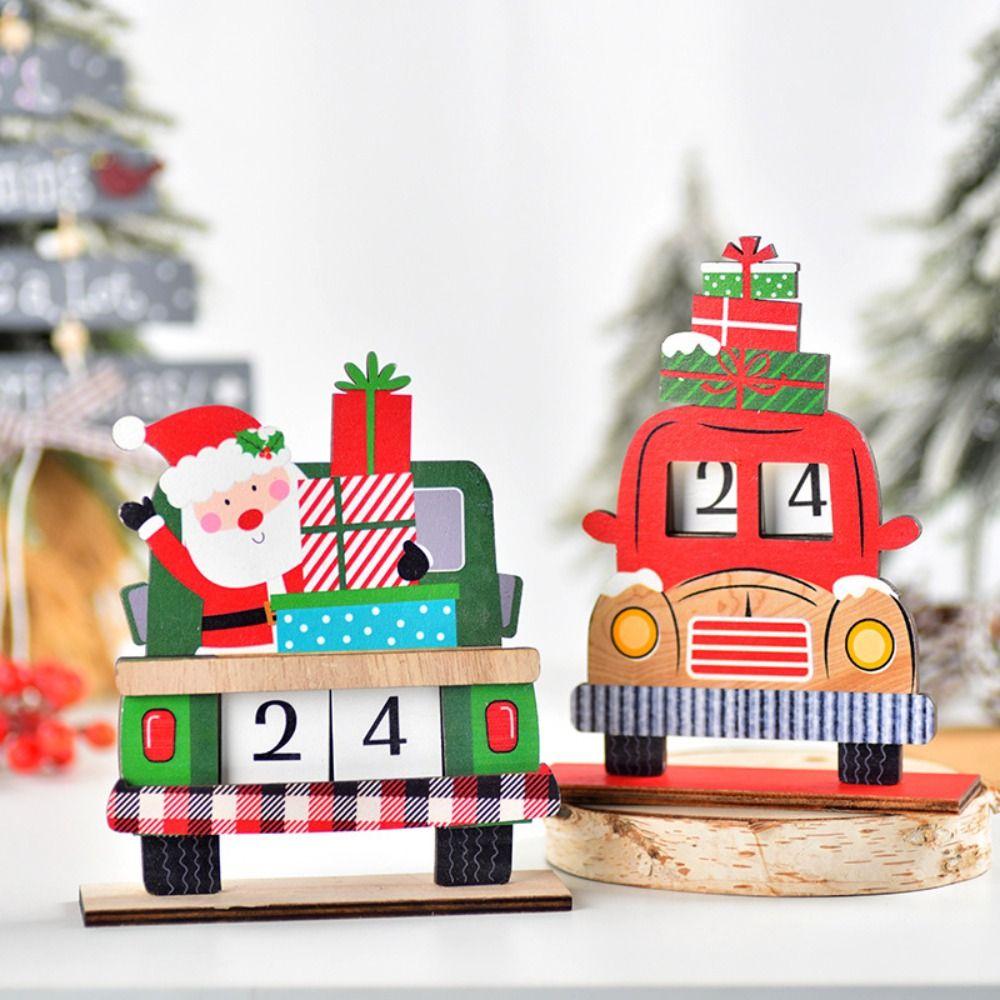 Santa Claus Santa Calendar Ornaments Wooden Car Wooden Ornament Christmas Advent Calendar Home