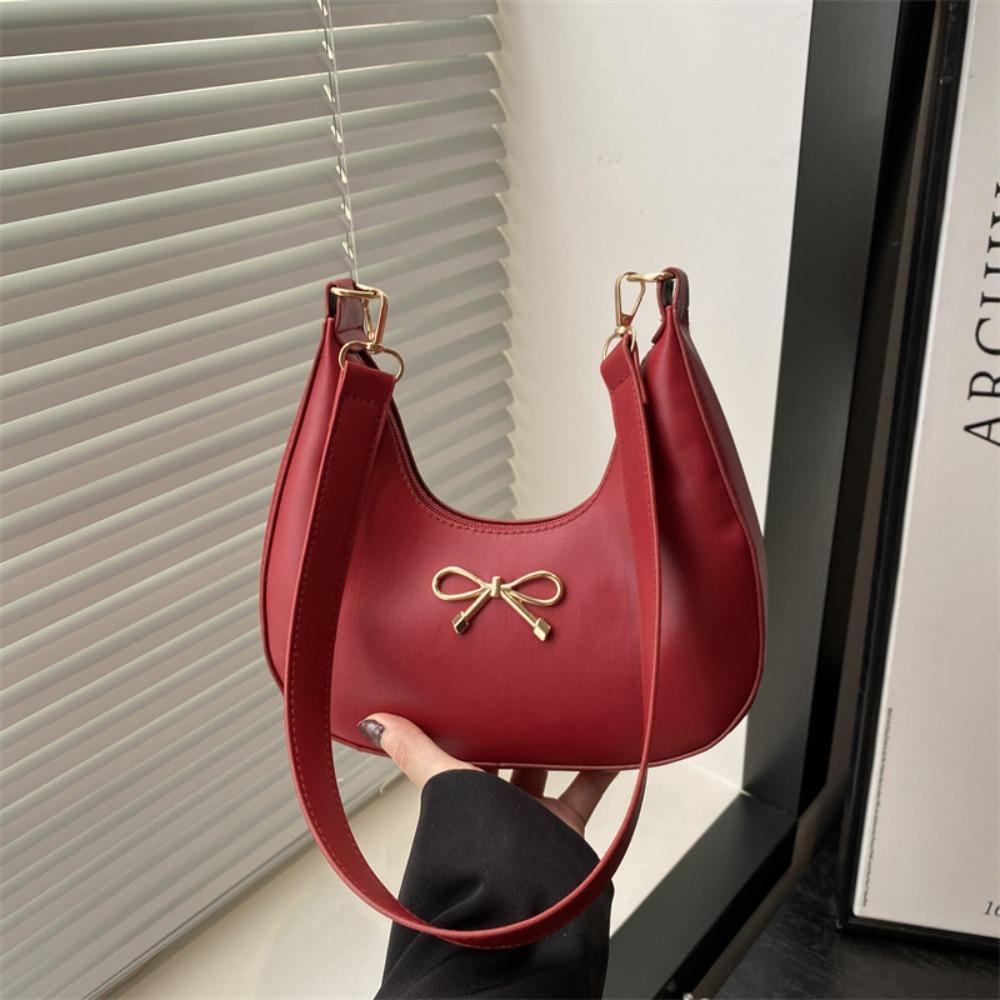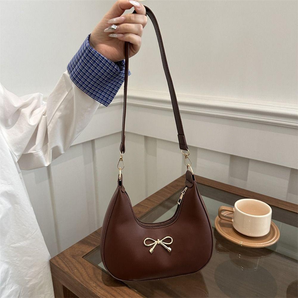 Сумка-полумесяц из искусственной кожи, Сумка-тоут, Сумка через плечо, Простая сумка на плечо с бантом, Женская