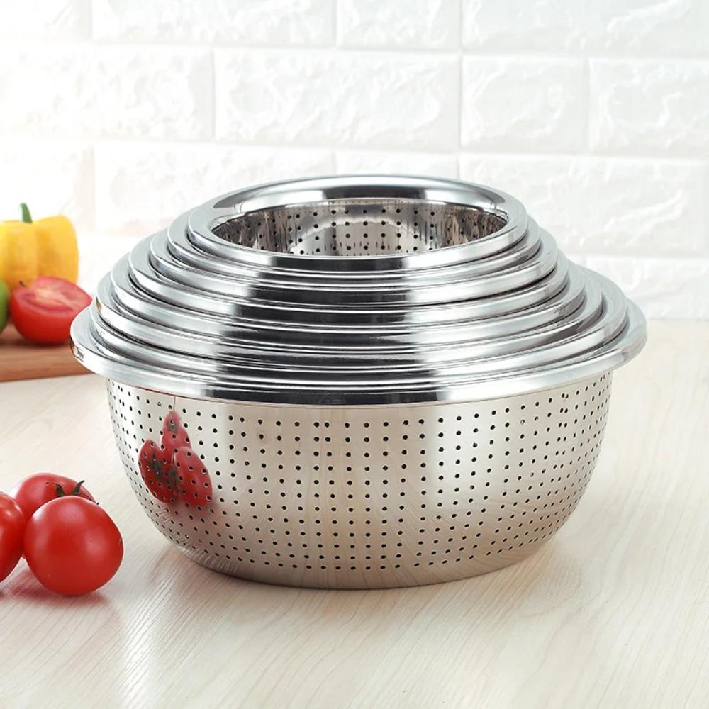 Круглая корзина для слива из нержавеющей стали, несколько дренажных отверстий, таз для слива, корзина для мытья риса, фрукты