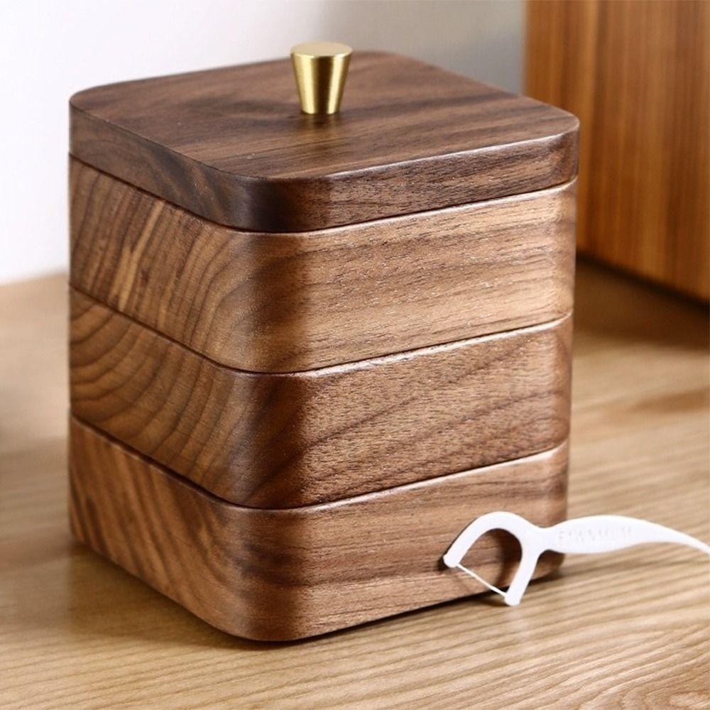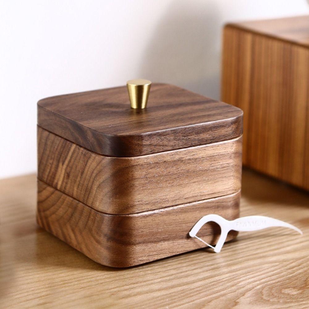 Деревянная (орех) банка для ватных палочек с крышкой Коробка для зубной нити Многофункциональная настольная коробка для зубочисток Дом