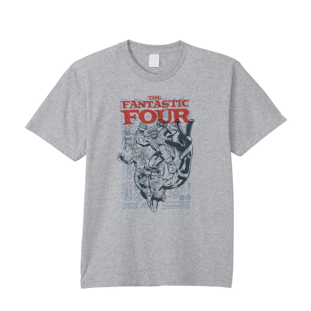 Small Planet Marvel The First Short Sleeve Size Heather Gray "Fantastic Four Step" T-Shirt Illustration, L,