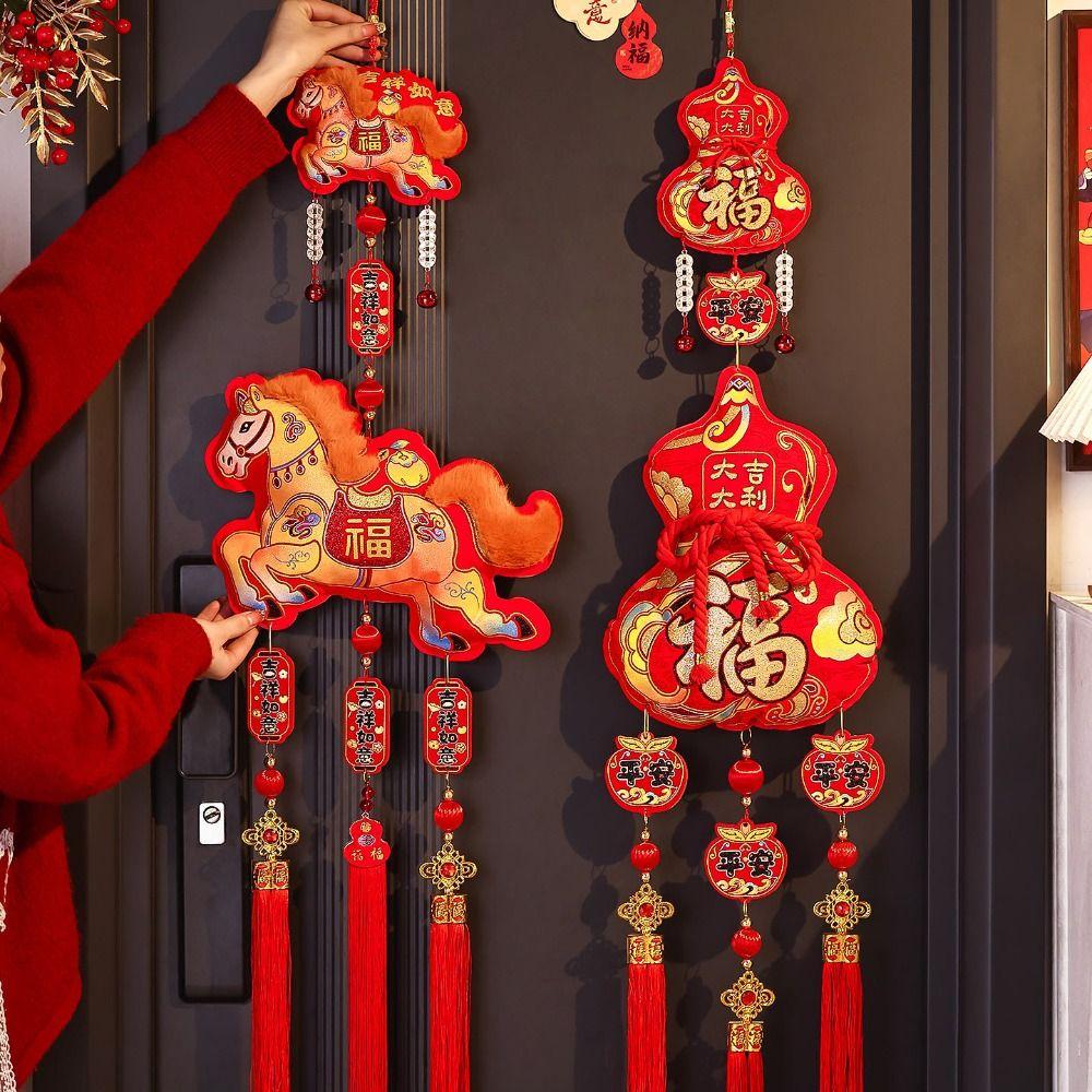 2026 Horse Year Fortune Character Pendant Flocking Hanging Tassels Fu Character Decorative Nonwovens Traditional — купить товар онлайн с бесплатной доставкой по всему миру!