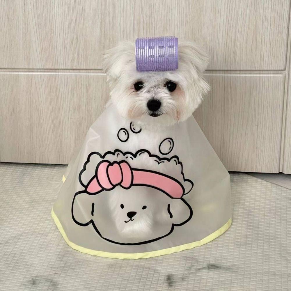 Adjustable Pet Cloak Waterproof Transparent Pet Haircut Cape Polyester Cartoon Print Dog Grooming Cape Pet Supplies